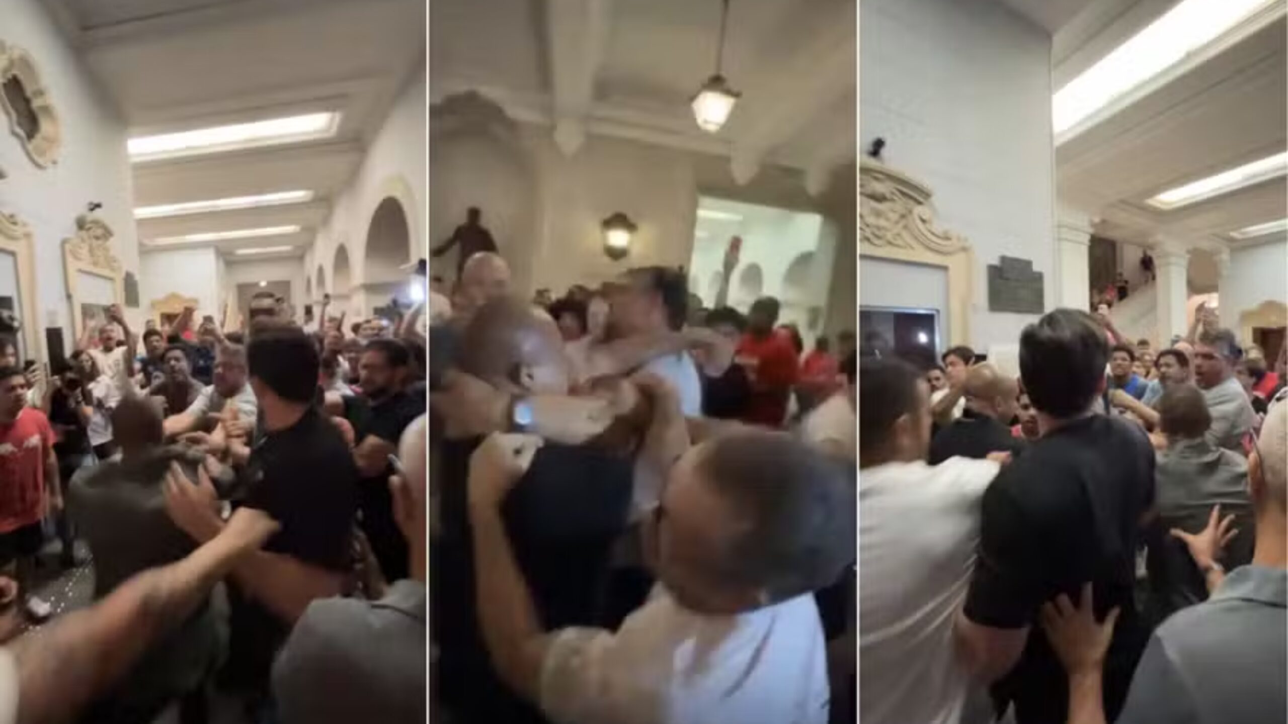 A confusão começou quando Douglas Garcia subiu às galerias do auditório para realizar gravações, o que foi interpretado pelos presentes como uma provocação. Sob gritos de "fascista", o ex-deputado foi retirado à força do local, tendo sua camisa completamente rasgada durante o tumulto nas escadarias. No térreo, o vereador Rubinho Nunes afirmou ter sido atingido por uma garrafada no rosto enquanto aguardava sua equipe.