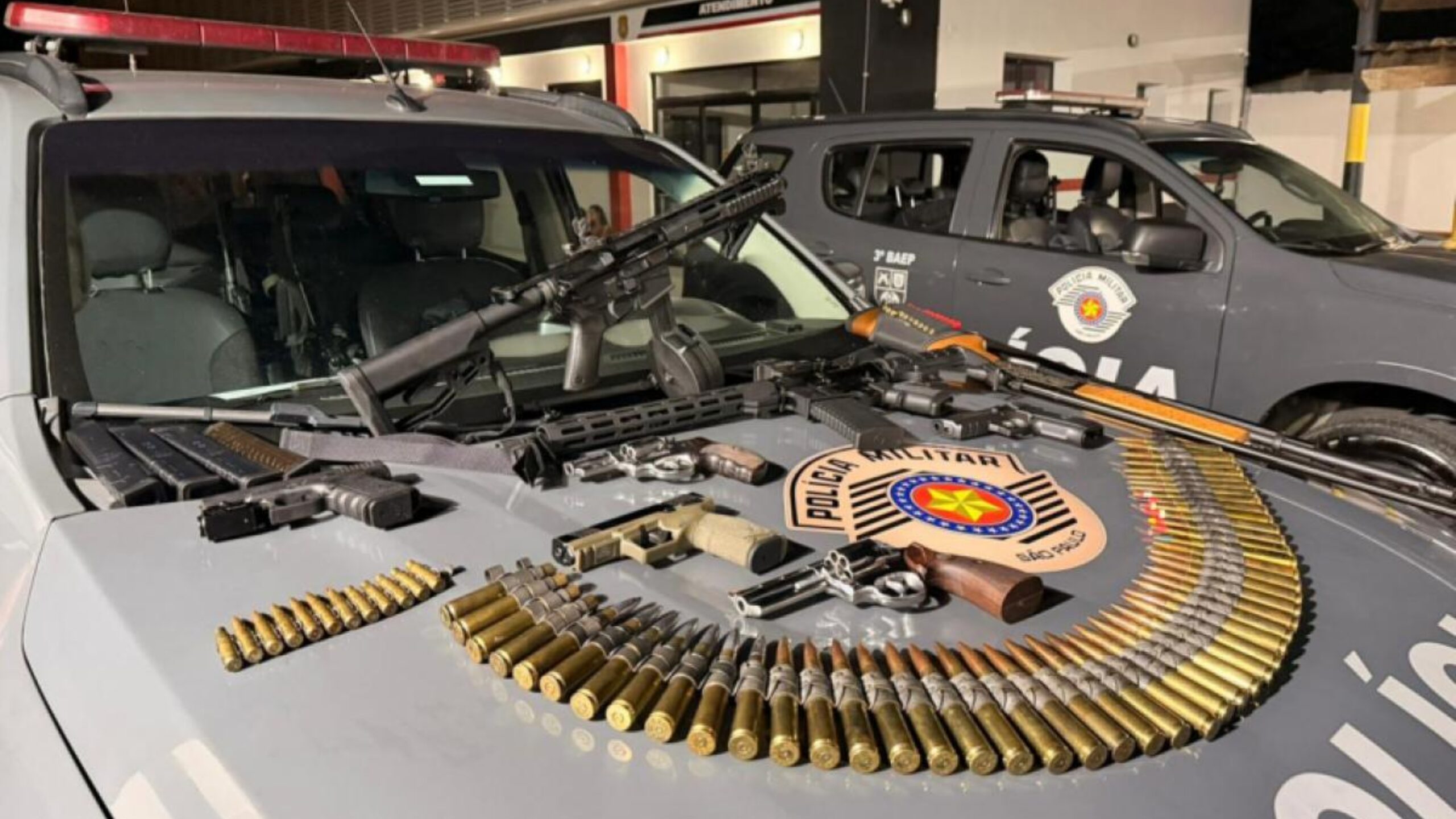 Um empresário de 49 anos foi preso em flagrante na noite de quarta-feira (7) após a Polícia Militar localizar um arsenal de armas de fogo e mais de 1,5 mil munições em uma pousada no bairro Martim de Sá, em Caraguatatuba. A ação foi conduzida por equipes do 3º Batalhão de Ações Especiais de Polícia (BAEP) após uma denúncia anônima sobre ostentação de armas em via pública.