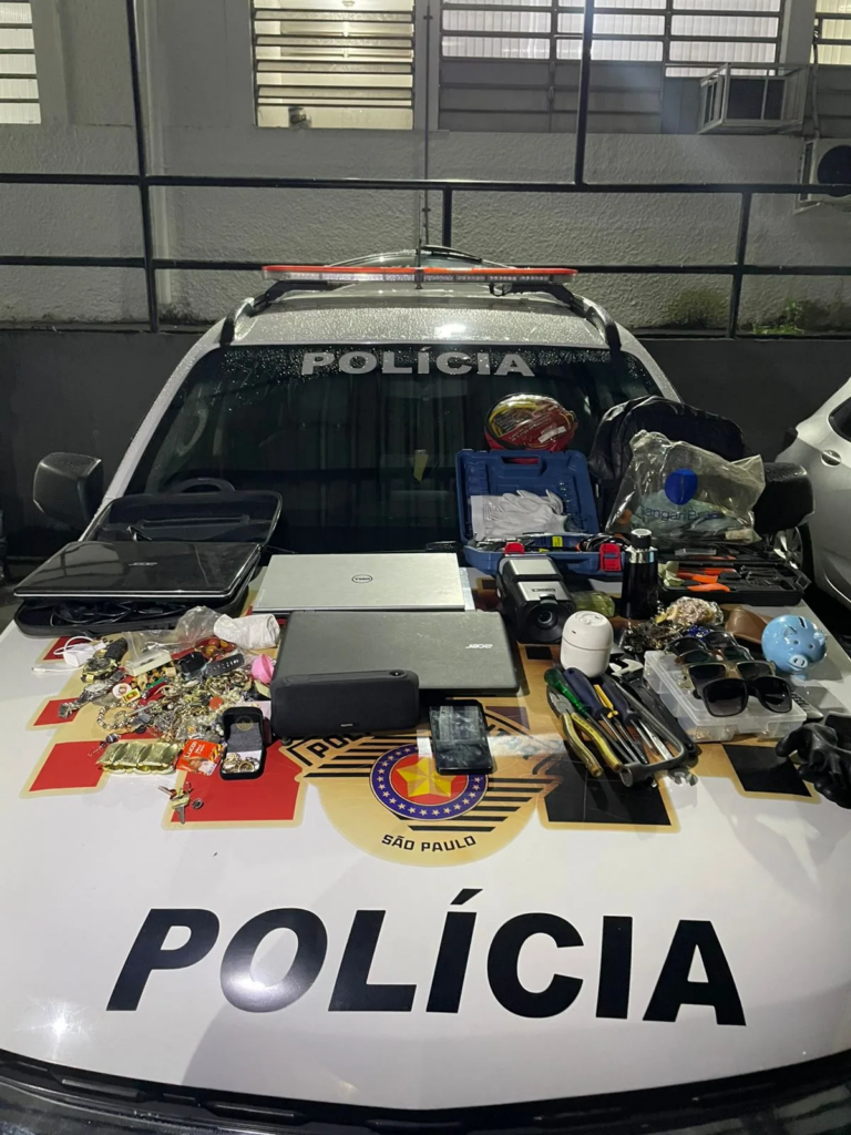 No interior do veículo abandonado, os policiais encontraram bicicletas, ferramentas, notebooks e bolsas, além de um documento de identidade. Com base em informações de testemunhas, a PM localizou dois suspeitos em uma adega na Avenida Tancredo Neves. Um deles possuía os mesmos dados do documento encontrado no carro. Durante a abordagem, os suspeitos confessaram que haviam furtado uma residência no bairro Parque das Palmeiras, em Pindamonhangaba, e que um segundo veículo, um Chevrolet Onix, também furtado, estava escondido no Jardim Paraíso do Sol.