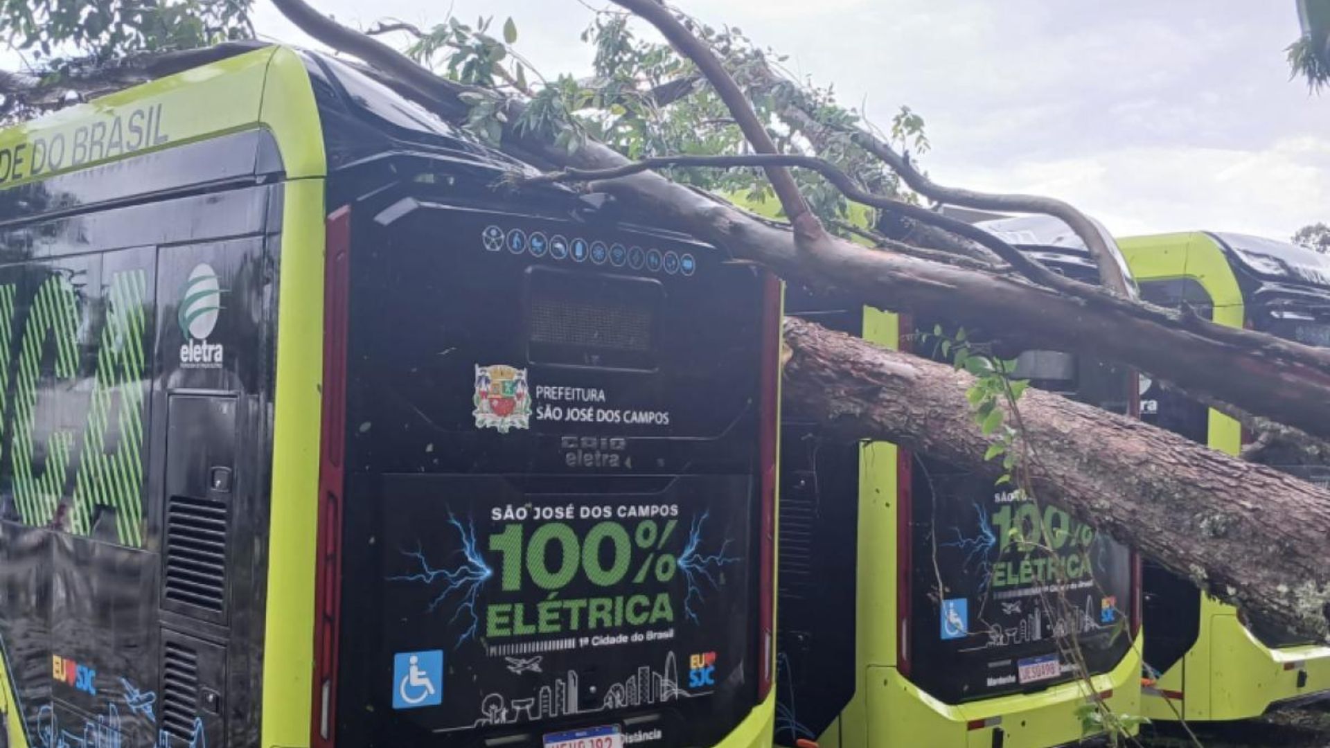 Imagens registradas logo após o temporal mostram quatro veículos elétricos sob troncos e galhos. Em nota, a Busvale (Associação das Empresas de Transporte Coletivo) classificou o episódio como uma "catástrofe ambiental" e confirmou que três veículos foram atingidos diretamente pelas árvores. Felizmente, não houve feridos, apenas danos materiais que ainda estão sendo contabilizados.