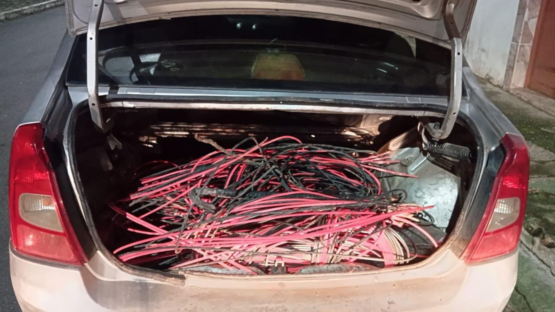 - Material Apreendido: Os policiais encontraram metros de cabos elétricos já cortados e organizados para o transporte, além de diversas ferramentas profissionais usadas para o corte da fiação.