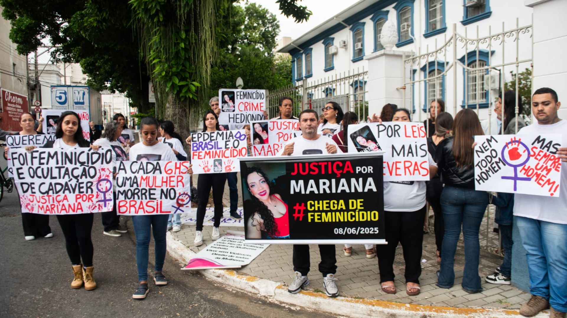 Desde as primeiras horas da manhã, familiares e amigos da vítima ocupam a frente do prédio com cartazes e gritos de "justiça". Mariana havia denunciado Luiz Felipe por perseguição meses antes de ser morta, evidenciando uma tragédia que o sistema de proteção não conseguiu evitar.